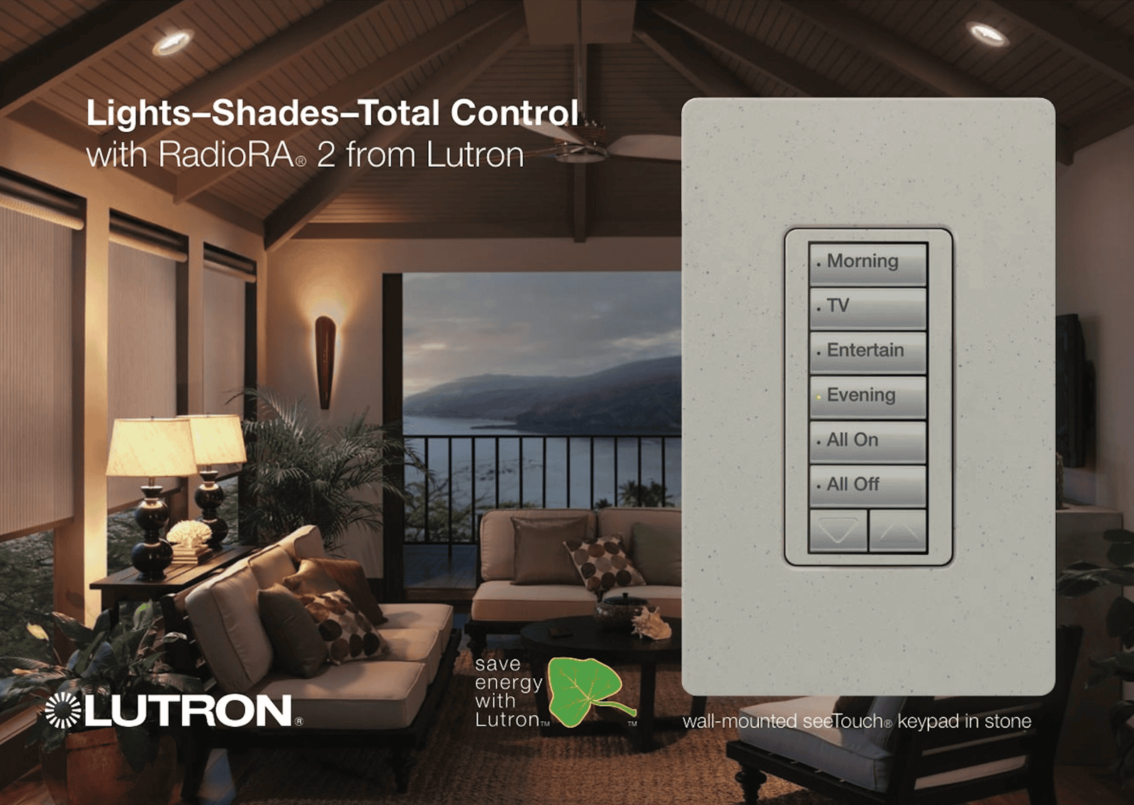 From a single dimmer switch to a whole-home lighting control system with motorized shades, Lutron gives you complete control over the ambiance, comfort, and energy efficiency of your home — all from your phone, a keypad, or your voice.