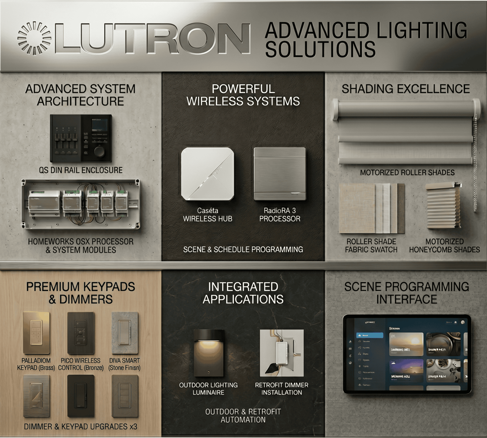 Lutron is the world's leading brand in smart lighting control and automated window treatments. Unlike budget smart home products, Lutron systems are engineered for reliability, precision, and seamless integration — the kind of quality that belongs in a custom home.